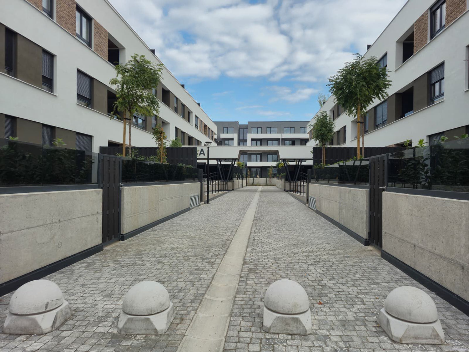 Ulaz u zgradu je u sredini- između dvije identične nasuprotne zgrade.